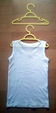ツルっとした、何の引っ掛かりもないハンガーに掛けた子供の肌着。