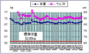 (開始より-2.7kg、4週前より+1kg、先週より+0.3kg)