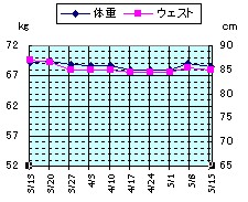 (開始より-3.4kg、4週前より+0.7kg、先週より-0.4kg)