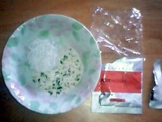 カップに入れて熱湯注いで3分のタイプ。