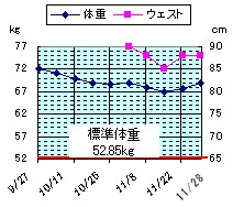 ウェスト:88cm(先週と変わりませんが、4週間前より-2cm)
