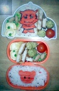 お弁当箱いっぱいに、ゴーカイブルーの顔がいいんだそうです。